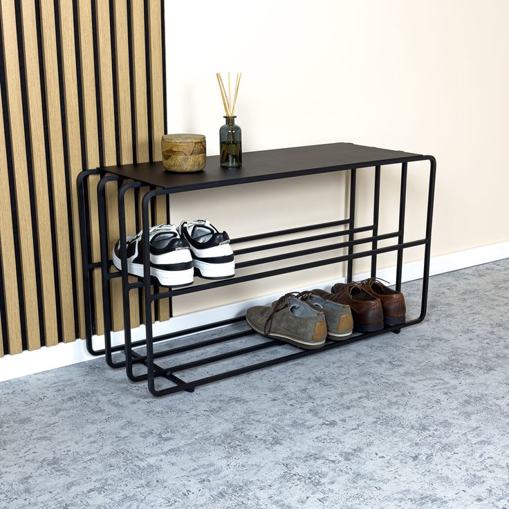 Seu acabamento em pintura eletrostática preta fosca garante alta durabilidade, proteção contra corrosão e um visual marcante. A estrutura aberta proporciona ventilação natural para os calçados, evitando odores e mantendo tudo sempre à mão com praticidade.